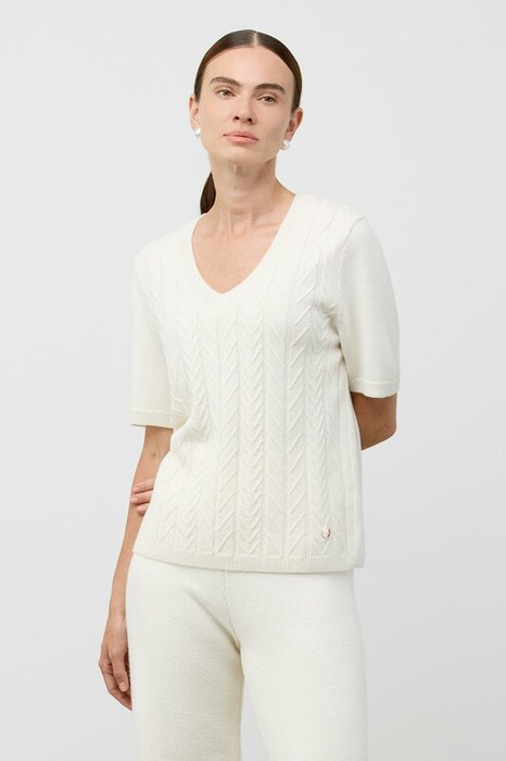 Короткий рукав и рельефная текстура придают джемперу современный вид, идеально сочетающийся с различными стилями одежды.