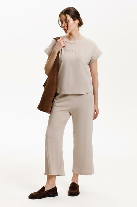 Футболка прямого силуэта из высококачественного гребенного хлопка с добавлением эластана. Нежная и струящаяся фактура полотна за счет специальной обработки soft touch дает ощущение комфорта в жаркие летние дни. Мягкий на ощупь принт выполнен из водных красок, что обеспечивает устойчивость к многократным стиркам.