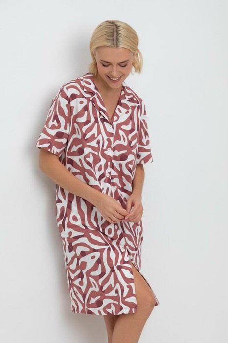 Рубашка-халат  из  высококачественного гребенного хлопка для домашнего комфорта.