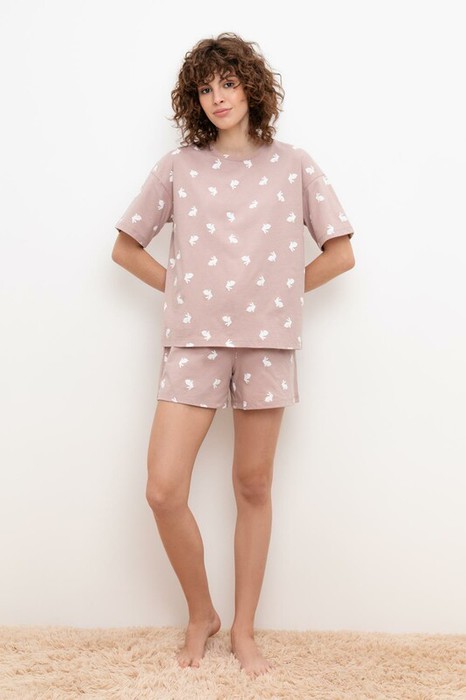 Very Neat пижама жен Е 20078/кофе с молоком,белые кролики
