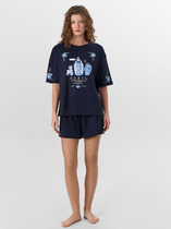 Комплект для сна и отдыха. Удлиненная футболка комфортно садится по фигуре. Бриджи из меланжевого трикотажа с добавлением лайкры с мягким поясом на резинке.