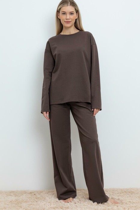 Комплект для комфортного отдыха из мягкого футера петли. Джемпер с длинными рукавами и спущенной линией плеча комфортно садится по фигуре. Брюки с карманами и мягким поясом на резинке. Свободный силуэт не сковывает движения.