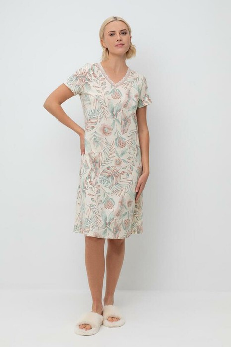 — Very Neat сорочка ночная жен Е 10054/айвори,акварельные тропики