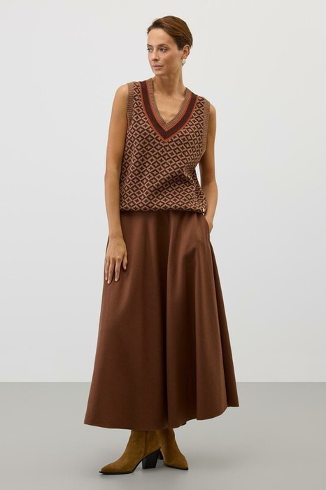 Жилет в кантри-стиле, изготовленный из высококачественной пряжи с применением передовой технологии смешанных волокон. Изысканное сочетание шерсти и акрила создает непревзойденный комфорт: модель деликатно подчеркивает силуэт, обеспечивает нежное прикосновение к коже и сохраняет безупречный внешний вид.