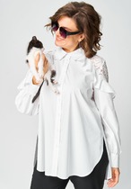 Укороченная блузка с пышными рукавами-фонариками выполнена из легкого хлопкового поплина. Супатная застежка на пуговицы из натурального перламутра. Внизу кулиса с лентами из основного полотна. В изделии будет комфортно, даже в самое жаркое время года. Подходит для любой фигуры. Сочетается в костюме с кюлотами D24.233 и юбкой D26.179