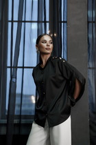 Летящая блузка с отложным воротником выполнена из премиальной вискозы и лиоцелла. Мягкий фактурный материал струится по телу. Вискоза обеспечивает отличную воздухопроницаемость и поддерживает комфортный микроклимат. Модель дополнена пуговицами из натурального перламутра, на спинке изделия металлический логотип бренда. Отлично впишется в нестрогий офисный дресс-код или в расслабленном повседневном образе с джинсами и юбками.