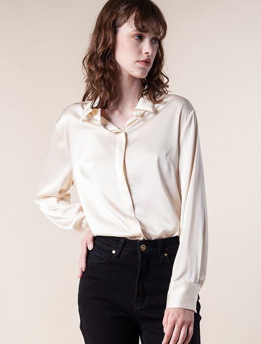 Блузка прямого силуэта выполнена из эластичного струящегося сатина. Невероятно женственная модель в тренде на пижамный стиль, изящно струится и драпируется по фигуре, напоминая натуральный шелк. Лаконичный дизайн поддерживает застежка планка на потайные пуговицы. Сочетайте изделие с жакетами и строгими брюками, внося в образ легкое настроение.