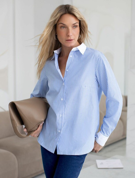 — Vilatte Блузка прямого силуэта D29.226 голубой-белый