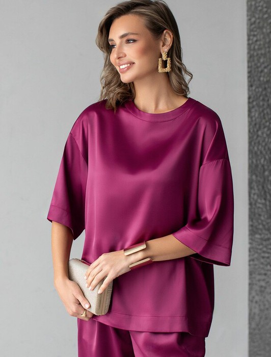 Совместные покупки Челябинск Женская одежда Блузки, рубашки — Vilatte Блузка свободная из струящегося плотного сатина D29.279 бургунди
