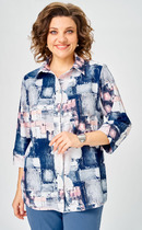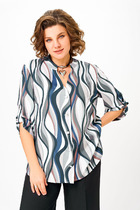 Свободный крой блузки и спущенная линия плеча  дарят ощущение легкости и непринужденности, делая образ одновременно женственным и современным. Широкие рукава средней длины гармонично дополняют образ и идеально подходят для полных рук, обеспечивая комфорт, свободу движений и уверенность. Аккуратная застежка на маленькую пуговицу добавляет утонченности, а круглый вырез красиво обрамляет шею, создавая аккуратную линию декольте.