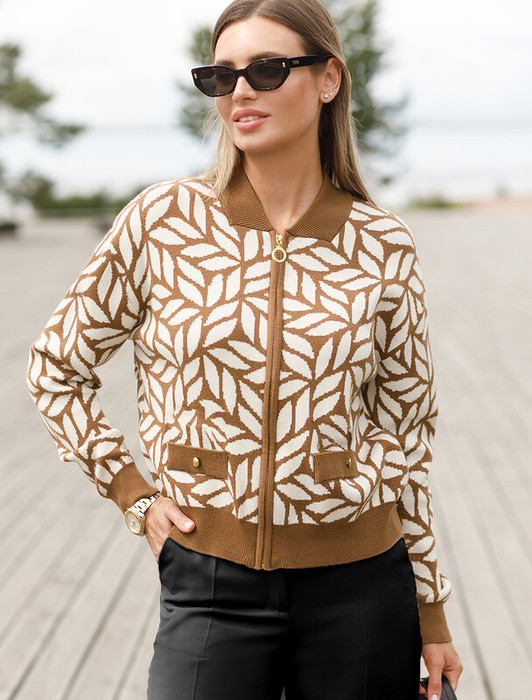 Совместные покупки Челябинск Женская одежда Кофты, кардиганы — Vilatte Бомбер двуслойной жаккардовой вязки с кашемиром D31.131 карамельный-беже