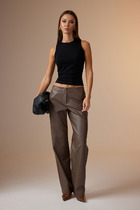 Брюки - дудочки выполнены из плотного джерси. Высокая посадка и стрелки зрительно увеличивают рост и визуально стройнят. Модель дополнена сзади эластичным поясом на резинке и боковыми разрезами по низу штанин. Лаконичные брюки станут идеальным дополнением базового гардероба. С легкостью дополнят строгий офисный стиль и повседневный аутфит.