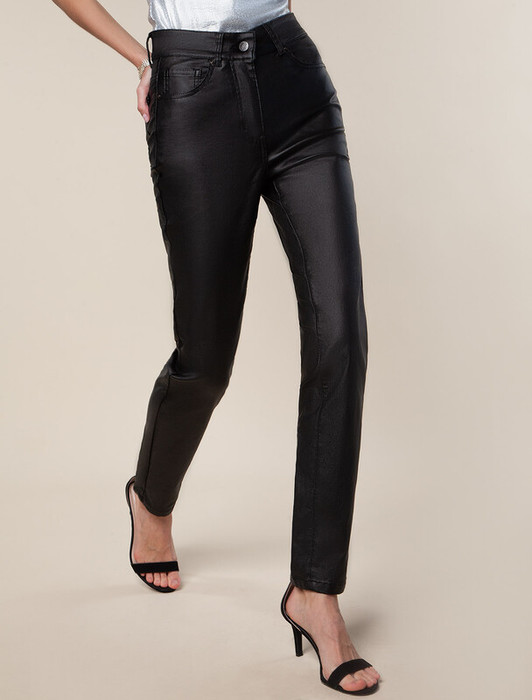 Vilatte Брюки из эластичного хлопка с покрытием под кожу D24.256 черный