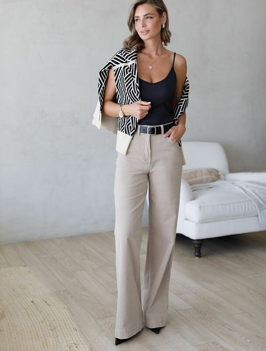 — Vilatte Брюки из эластичного микро-вельвета D24.278 светло-бежевый