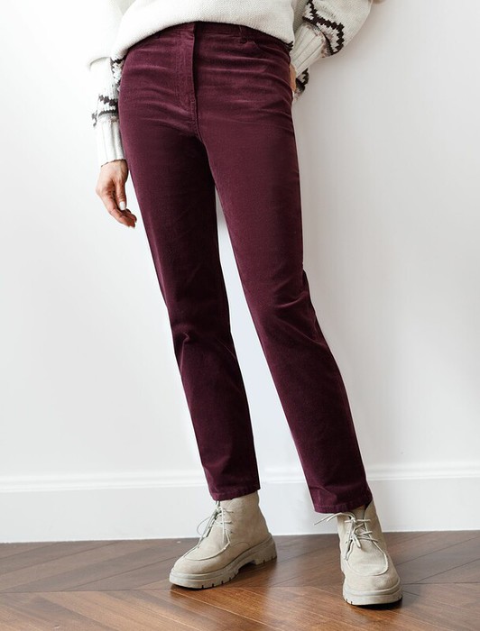 Брюки выполнены из мягкого хлопкового микро-вельвета с добавлением эластана. Изделие комфортно садится по фигуре и не сковывает движения. Модель с пятью карманами, как у джинсов-скинни дополнена высококачественной фурнитурой с фирменным логотипом бренда. Хорошо комбинируется с вязаным трикотажем, блузками и денимом. Как альтернатива брюкам, в нестрогий офисный дресс-код.