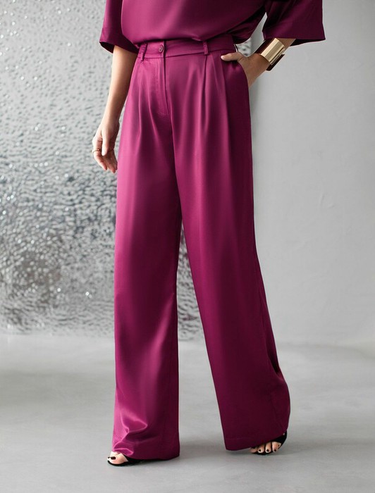 Совместные покупки Челябинск Женская одежда Брюки — 27.03 Vilatte Брюки палаццо широкие из струящегося сатина D24.304 бургунди
