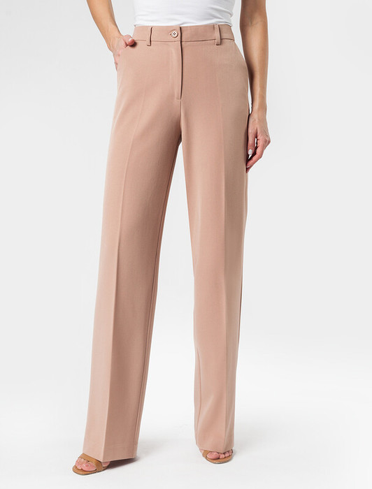 Брюки прямого кроя с – универсальный предмет весеннего гардероба. Высокая посадка и стрелки зрительно увеличивают рост и визуально стройнят. Ткань брюк: поливискоза с эластаном, гарантирует непревзайденный комфорт и формоустойчивость, хорошо тянется и не мнется. В таких брюках будет комфортно даже летом, благодаря наличию вискозы в ткани. Тело будет всегда дышать. Классическая длина отлично сочетается с обувью в любом стиле и подходит всем типам фигуры.