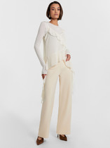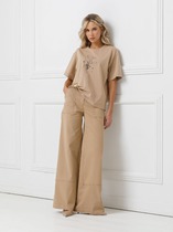 Брюки свободного кроя выполнены из костюмной ткани в полоску. Модель с карманами и поясом на резинке дополнена регулируемым шнурком из основной ткани. Изделие не сковывает движений и подходит для любого типа фигуры. Сочетается в костюме с жилетом D27.001
