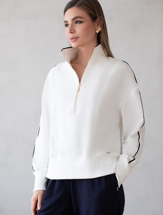 Vilatte Джемпер из эластичного футера двухнитки с воротом на молнии D49.086 белы
