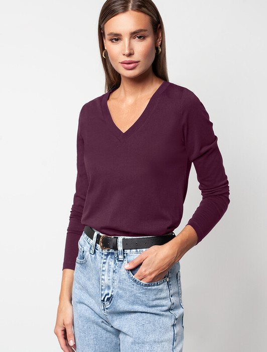 Совместные покупки Челябинск Женская одежда Джемперы, свитеры, водолазки — Vilatte Джемпер из премиального хлопка с эластаном D49.958 бургунди
