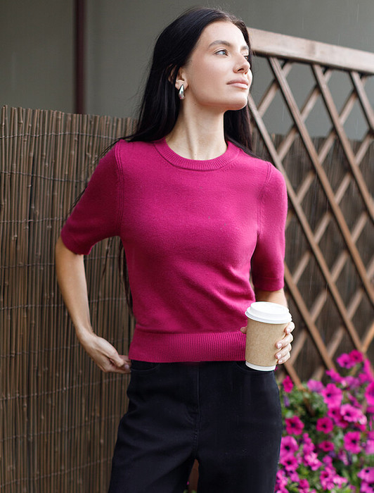 Джемпер с коротким рукавом выполнен из мягкой пряжи с кашемиром. Лаконичная модель с круглым воротом идеально сидит по фигуре. Благодаря своей универсальности подойдет для любого гардероба и в офисный дресс-код. Мягкая пряжа очень приятная к телу, поддержит комфорт на протяжении всего дня, при этом не перегревая. Сочетается в костюме с брюками D38.013, D38.012 и юбкой D36.016