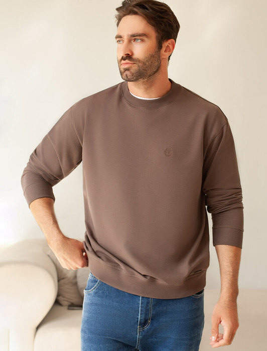 Совместные покупки Челябинск Мужская одежда Джемперы, свитеры — Vilatte Джемпер из тонкого премиального футера с эластаном U49.067 кофейный