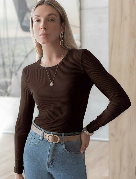 Совместные покупки Челябинск Женская одежда Джемперы, свитеры, водолазки — Vilatte Джемпер из трикотажа в широкий рубчик D49.106 шоколад