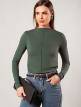 Совместные покупки Челябинск Женская одежда Джемперы, свитеры, водолазки — Vilatte Джемпер с цельнокроеным воротом из премиального хлопка D49.113 оливковый