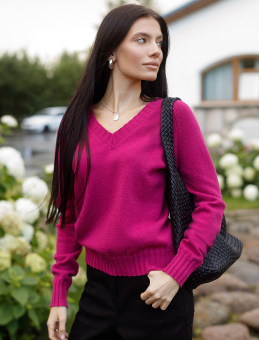 Совместные покупки Челябинск Женская одежда Джемперы, свитеры, водолазки — Vilatte Джемпер с V-вырезом из пряжи с кашемиром D39.360 фуксия