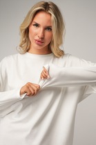 Джемпер с воротом на молнии жаккардовой вязки выполнен из нежной пряжи на основе вискозы с добавлением кашемира. Мягкая модель с серебристой фурнитурой не раздражает кожу, приятно ощущается на теле и поддерживает комфортный микроклимат. Совет стилиста: такой джемпер может стать ключевым акцентом в сдержанном комплекте. Выбирайте однотонные низы в тон рибаны или на контрасте.