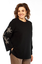 27.03 Vilatte Свободный свитшот с принтом и разрезами из эластичного футера дву