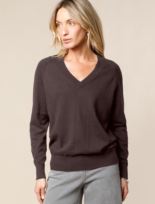 Vilatte Джемпер тонкой вязки из хлопка с кашемиром D39.352 коричневый