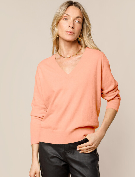 Vilatte Джемпер тонкой вязки из хлопка с кашемиром D39.352 персиковый