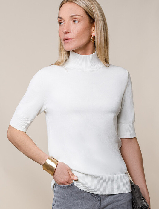 Совместные покупки Челябинск Женская одежда Джемперы, свитеры, водолазки — Vilatte Джемпер тонкой вязки из хлопка с нейлоном D34.201 натуральный белый