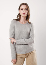 Vilatte Джемпер тонкой вязки из хлопка с нейлоном D34.201 серый меланж