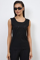 Vilatte Джемпер тонкой вязки из хлопка с нейлоном D39.354 черный