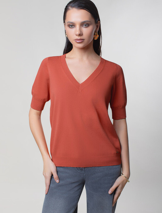 Заказать Vilatte Джемпер тонкой вязки из вискозы с нейлоном D39.355 терракотовый