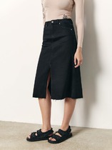 Vilatte Джинсовая юбка прямая с разрезом и декоративной стиркой из эластичного