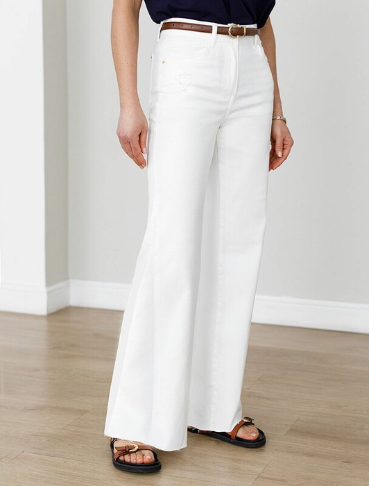 Джинсы клеш от колена с клином белого цвета выполнены из эластичного денима плотностью 11 OZ11 OZ - легкость и свобода движений, подходят для активного дня. Эта модель — воплощение стиля гранж. Главная фишка — эффектные прорези под передним карманом и на заднем кармане, которые добавляют образу смелости. Дизайн дополнен необработанным нижним краем. Клеш от колена, который создан с помощью клиньев, выгодно вытягивает силуэт, визуально удлиняет ноги и подчеркивает округлые бедра, создавая женственный образ без лишних усилий. Джинсы подходят на большие размеры, позволяя чувствовать себя уверенно, специальный крой выгодно выделяет достоинства и мягко маскирует возможные нюансы фигуры. Такие стильные джинсы легко впишутся в гардероб, дополнят повседневный расслабленный или более яркий образ. Джинсы подходят тем, кто ценит уверенность в себе и всегда выбирает лучшее.