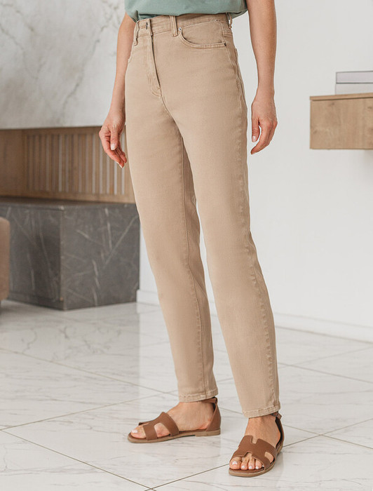 Совместные покупки Челябинск Женская одежда Джинсы — Vilatte Джинсы mom-fit из эластичного денима D54.109 бежевый