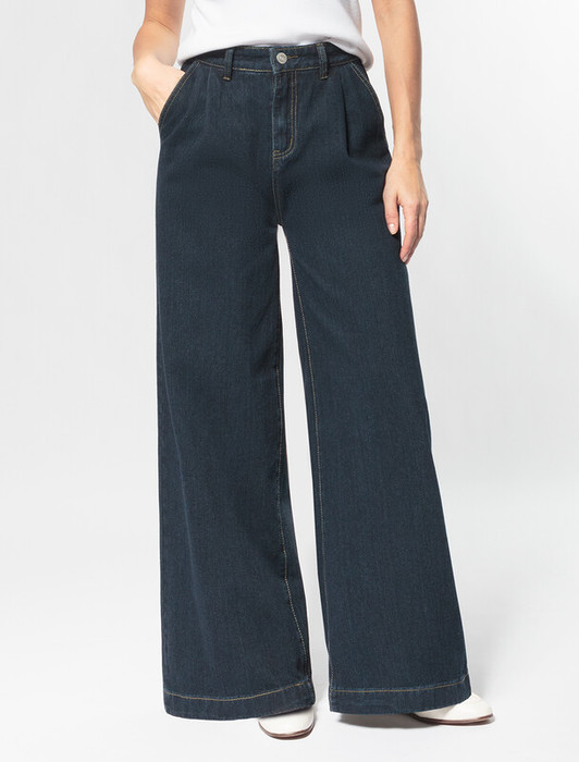 Джинсы "трубы" из эластичного денима. Пропорции модели дополнительно увеличивает пара защипов спереди под поясом, а ее расслабленный характер подчеркивает легкая стирка. Свободный крой подходит для любой фигуры, скрывая любые недостатки и подчёркивая достоинства. За счет эластана ткань не вытягивается и сохраняет безупречный внешний вид в течении долгого времени.