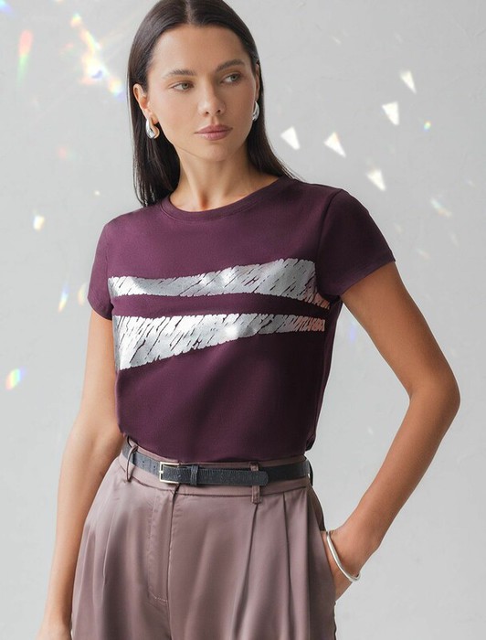 Совместные покупки Челябинск Женская одежда Футболки — Vilatte Футболка D49.135 бургунди_штрихи