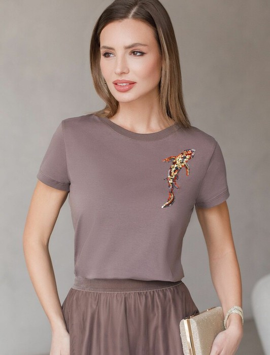 Совместные покупки Челябинск Женская одежда Футболки — Vilatte Футболка D49.135 кофейный_рыба