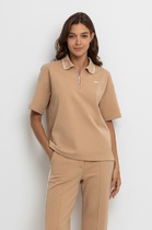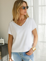 Футболка с цельнокроеным рукавом выполнена из премиального хлопка. Базовая однотонная модель идеально впишется в любой гардероб. V-вырез подчеркивает ключицы и удлиняет шею, хорошо сочетается с жакетами или кардиганами. Изделие дополнено металлическим логотипом бренда.