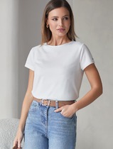 Футболка с цельнокроеным рукавом выполнена из премиального хлопка. Базовая однотонная модель идеально впишется в любой гардероб. V-вырез подчеркивает ключицы и удлиняет шею, хорошо сочетается с жакетами или кардиганами. Изделие дополнено металлическим логотипом бренда.