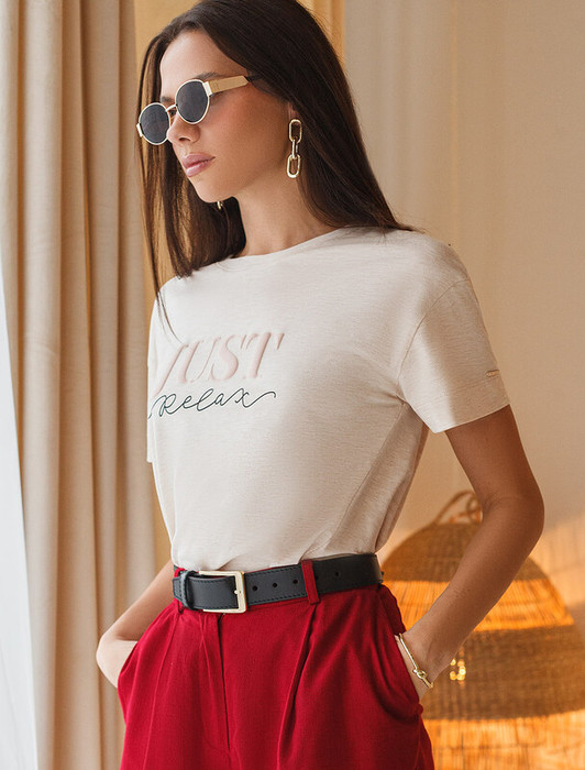 Футболка выполнена из премиального хлопка с авторским принтом. Just relax – «Просто расслабься» Свободная модель дополнена двумя вертикальными рельефами, заканчивающиеся разрезами. Мягкий эластичный хлопковый трикотаж гарантирует исключительный комфорт и уют дома. Идеально сочетается в костюме с брюками D44.131