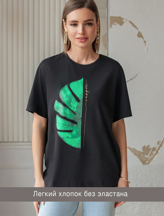 Совместные покупки Челябинск Женская одежда Футболки — Vilatte Футболка из премиального хлопка с авторским принтом D49.089 черный_inspi