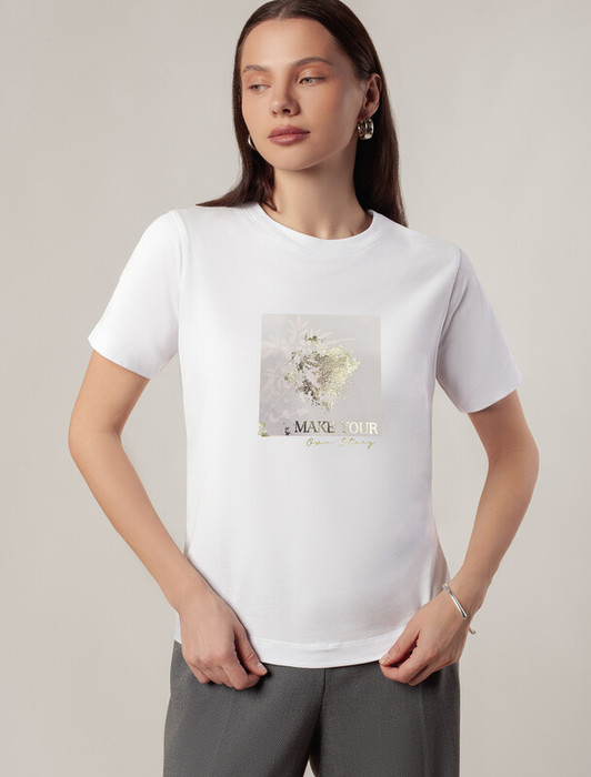 Футболка выполнена из премиального хлопка.Принт "леопард" нанесен фактурными красками с устойчивым покрытием. Наличие эластана в составе гарантирует комфорт и формоустойчивость. Изделие дополнено фирменным металлическим логотипом бренда.