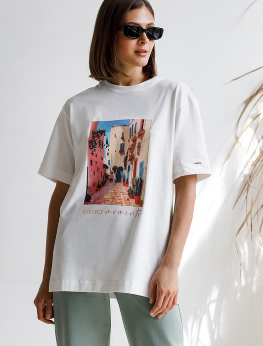 Vilatte Футболка из премиального хлопка с авторским принтом фольгой D49.978 бел