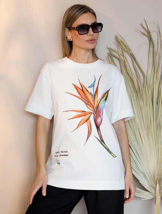 Совместные покупки Челябинск Женская одежда Футболки — Vilatte Футболка из премиального хлопка с авторским принтом фольгой D49.978 бел